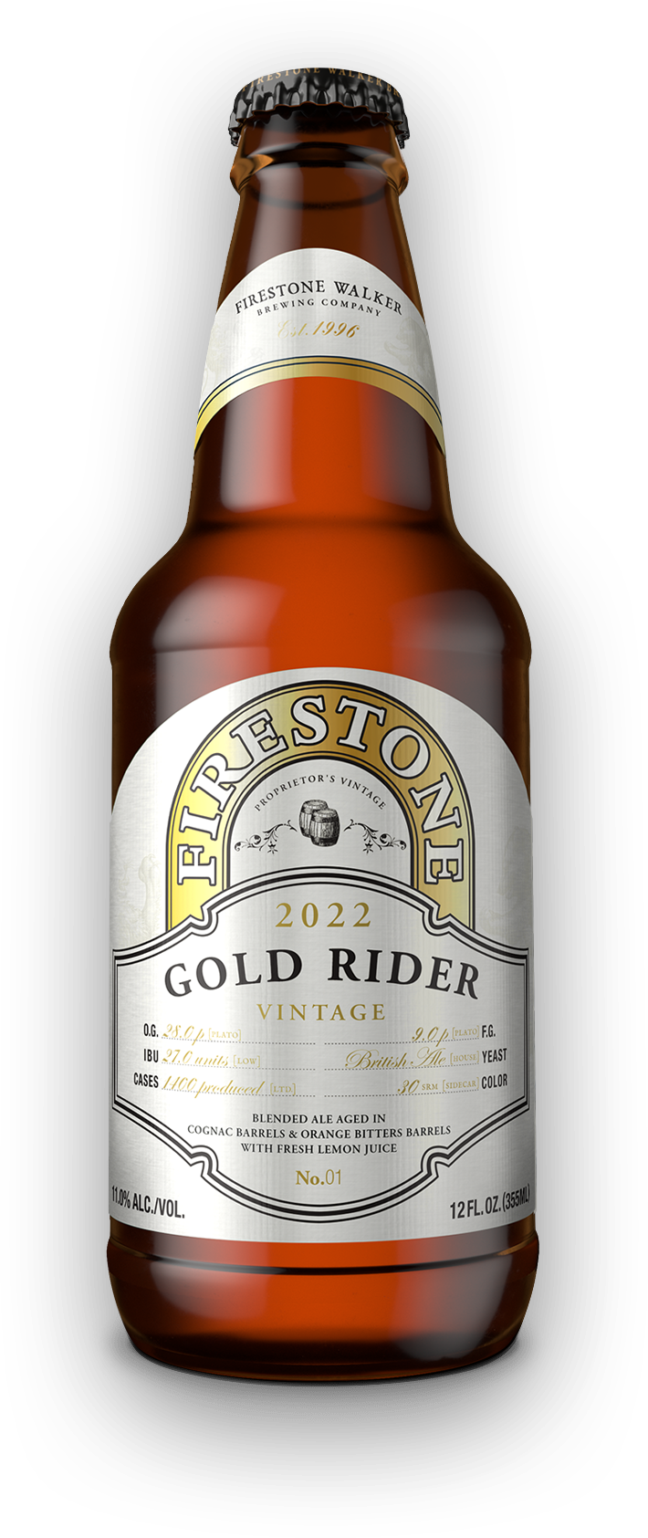 Gold Rider is a high-concept hybrid beer inspired by the Sidecar cocktail. The story of this beer began when we brewed a base beer with an infusion of Central Coast white wine juice. After fermentation, we aged the beer in 500 liter French Cognac barrels for two years with a separate portion matured in orange bitters barrels. Finally, we incorporated a touch of fresh-squeezed lemon juice to elevate the experience. The result is a distinctive barrel-aged beer whose ingredients and flavors faithfully mirror the experience of enjoying a classic Sidecar.