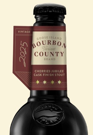 2025 Bourbon County Brand Cherries Jubilee Stout As stout ages, Goose Island’s brewers often observe a range of fruit expressions that emerge from the barrel and from time itself. Inspired by the flambéed dessert classic Cherries Jubilee, 2025 Bourbon County Brand Cherries Jubilee Stout captures the essence of cognac-soaked cherries and caramelized citrus. The beer began its aging journey in freshly emptied bourbon barrels, which impart rich layers of oak, warm vanilla, and subtle baking spice. It was then finished in cognac barrels, adding elegant notes of dried fruit and contributing to a rich, full mouthfeel. Following the aging process, the stout was blended with Montmorency cherries, citrus, and panela–resulting in a velvety, decadent beer with flavors of candied dark cherry, soft vanilla, and a caramelized citrus finish.