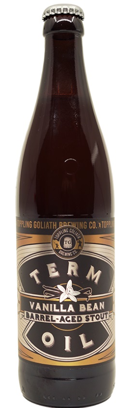 Term Oil Vanilla Bean warms the palate with notes of toasted marshmallow, chocolate nougat, and whipped cream all supported by a rich bourbon-barrel-aged stout.