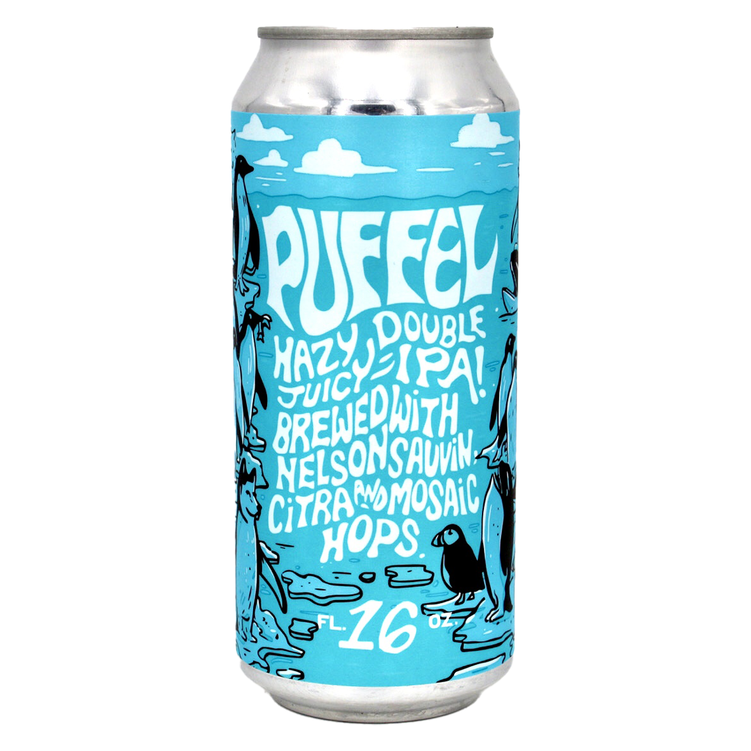 At the dawn of Pangea and off the coast of the coast of an Archipelago that included Madagascar, New Zealand, and the Faroe Islands when reached by a ferry through a mystical portal to the center of earth you’d wind up in the upside down where Puffins, Pengwolfs and Porcas dominated air, land and sea. The temperature was always tropical winter with long sunny days and pillowy clouds of floof. Puffel hearkens this yesteryear of a supercontinent long forgotten with its cloudy cover, New Zealand bred Nelson Sauvin hops which bring cool climate white wine grape flavors, extreme fruitiness, passionfruit, and fresh crushed gooseberries. But beware! Hungry like the Pengwolf...it packs a deceptively potent punch.
