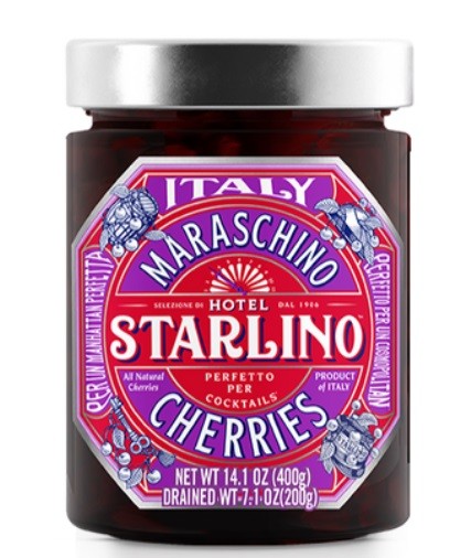 Hotel Starlino cherries are exquisite all-natural Maraschino cherries matured for two weeks in their natural Marasca juice then rested for another week to achieve their peak flavor.