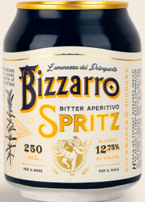 The original Bizzarro Spritz - an artfully formulated combination of Bizzarro Bitter Apertivo, natural white wine and bubbles, heedfully compressed into 250ml cans of liquid allurement. A subtle, complex and delicious canned cocktail, our Spritz is dry, moreish and invigorating. Made from artisan ingredients, the Bizzarro Spritz is pure refreshment, ready for drinking anytime, anywhere.