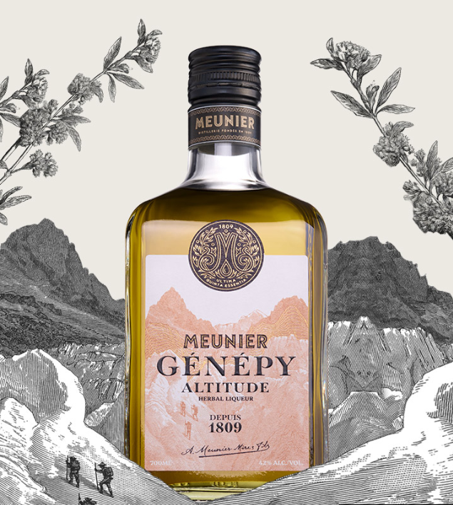 Génépi Meunier Altitude offers amateurs of herbal liqueurs a low-sugar spirit with an intense flavour profile. This recipe of Génépi provides a frank and open burst of complexity, with herbaceous and floral aromas, in a perfect balance typical of the craft distillates of the Maison Meunier.