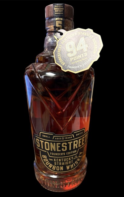 Stonestreet Founder’s Edition 5 Year Bourbon Whiskey is crafted from a mash bill of 70% corn, 21% wheat, and 9% malted barley, then aged five years in new charred American oak. Bottled at 94 proof, it offers a softer wheated style with notes of caramel, vanilla, and toasted oak alongside hints of fruit and gentle spice. The balance of sweetness and grain character makes it approachable yet flavorful, with a smooth finish that highlights the influence of its time in the barrel.