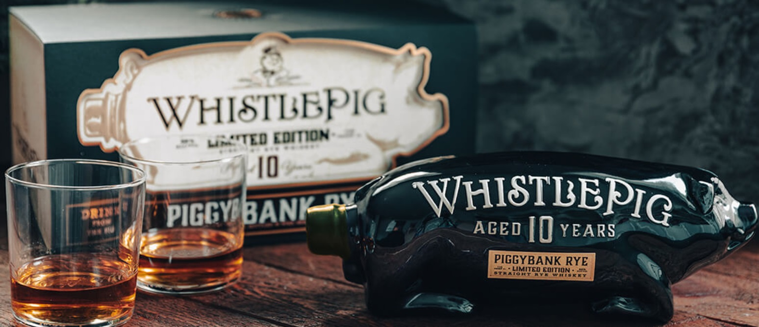 Inspired by a 19th century, antique bitter pig decanter, our annual PiggyBank Edition of WhistlePig Small Batch Rye brings more poundage, more proof and more swine swagger than the original. This prime cut is wax sealed and sure to hog the show on a home bar or holiday mantle.