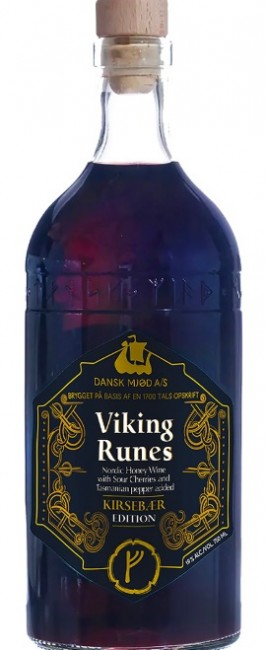 Viking Runes Kirsebær Edition - 19% ABV - gets its stunning deep red color, slightly spicy and temperamental aftertaste and depth from the addition of Sour Cherries and Tasmanian Pepperberries. Viking Runes pairs well with sweet cuisine as a dessert wine – and is particularly good with dark chocolate and rich desserts. Or enjoy it chilled on a warm night, straight or topped with demi-sec sparkling wine.